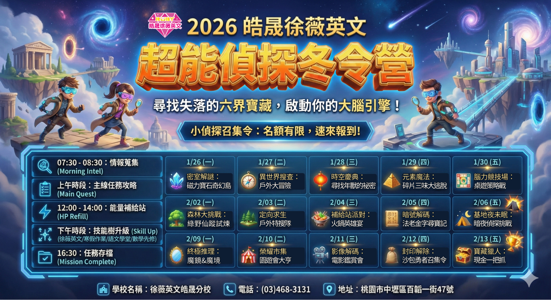 快快加入皓晟的 2026 超能偵探冬令營!一起去尋找失落的六界寶藏啦!![]()